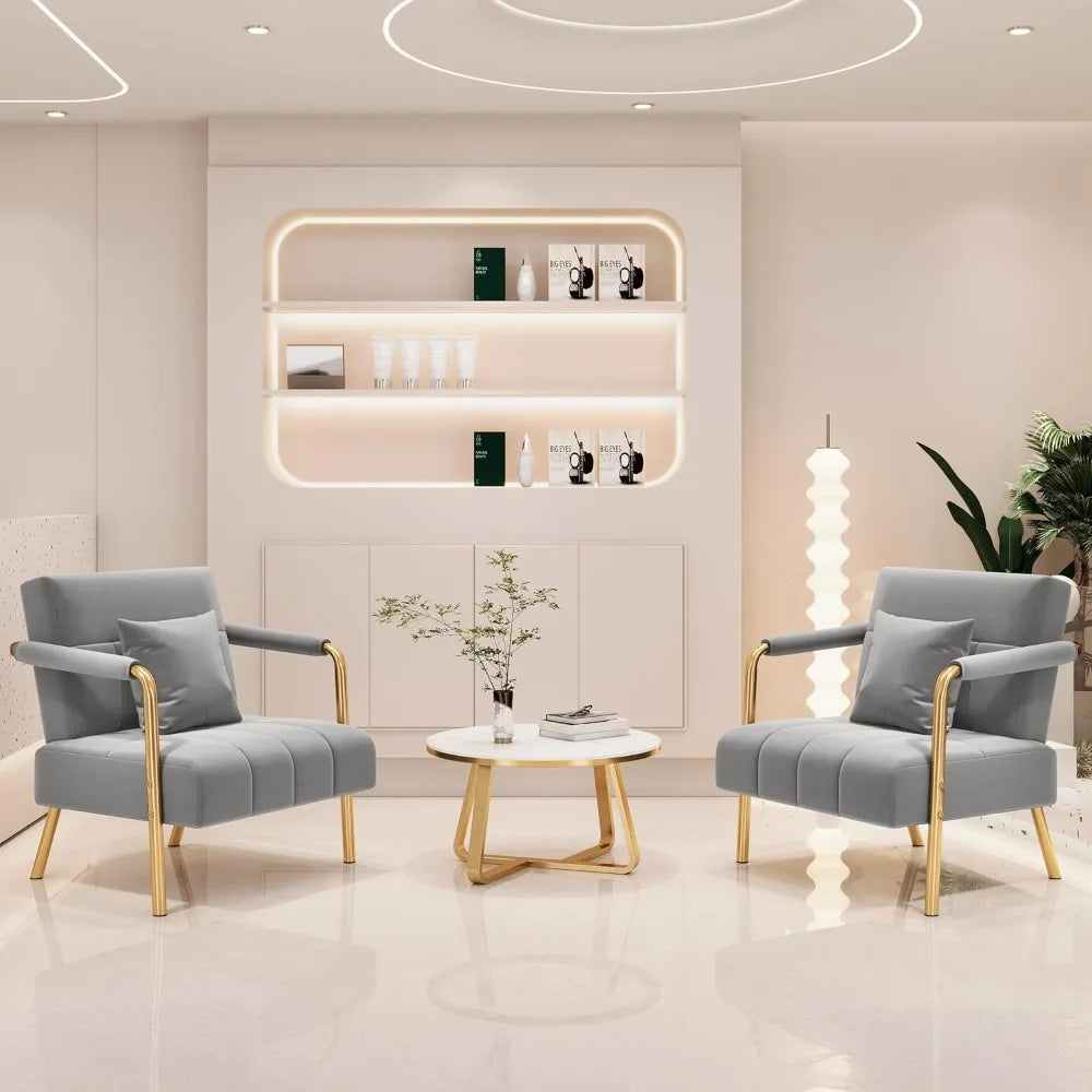30" W Accent Chair Velvet Oversized Armchair with Golden Frame & Cozy Pillow