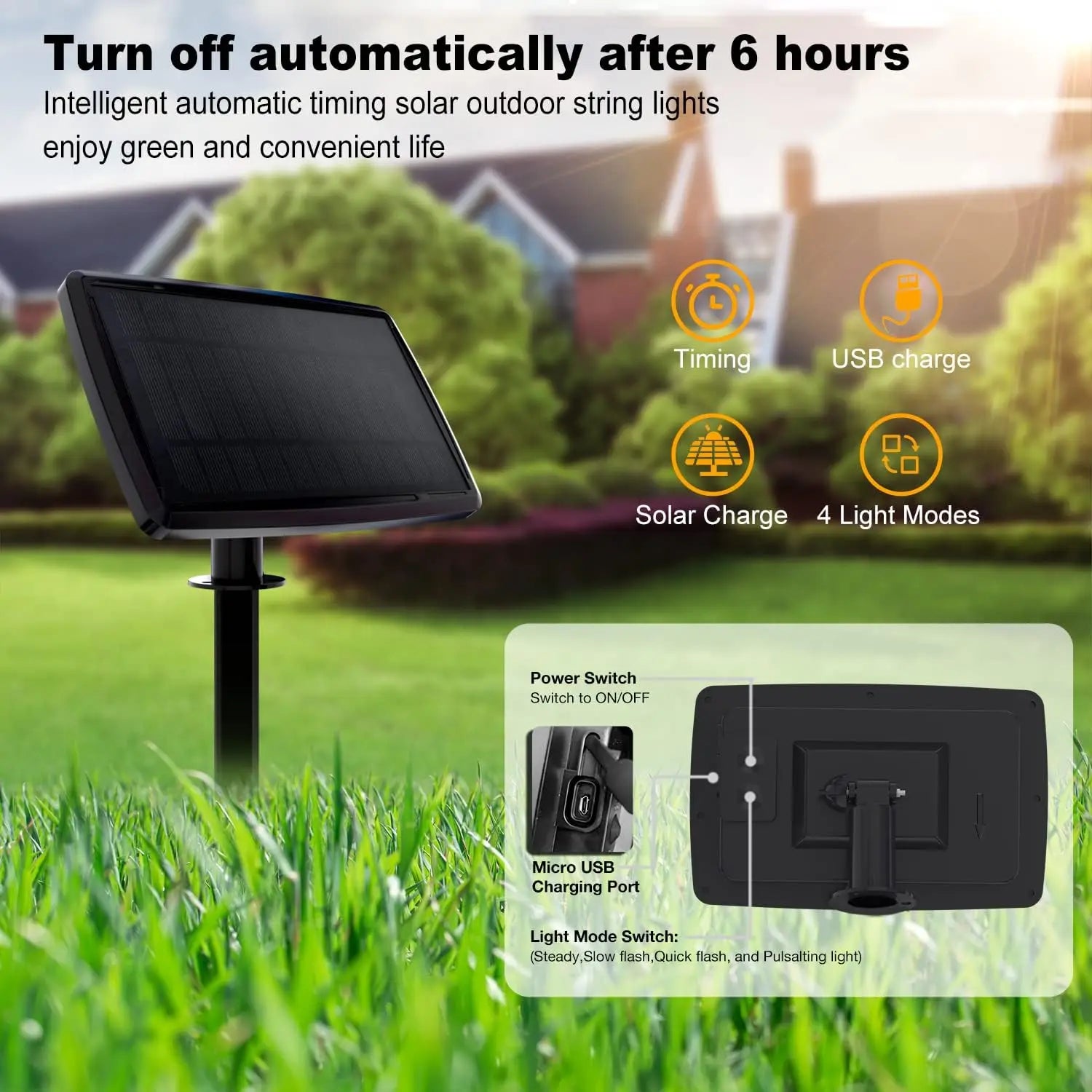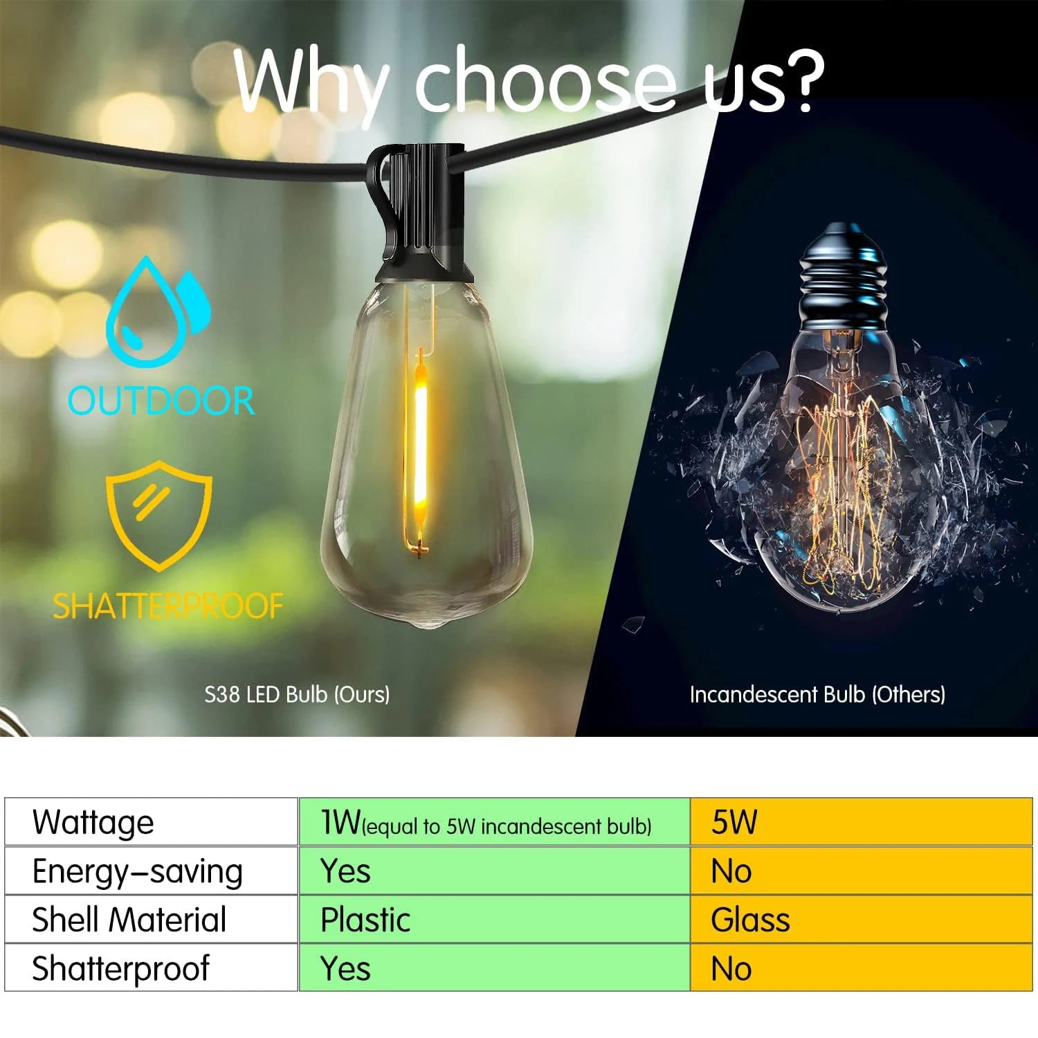 50 Feet Solar Outdoor String Lights, 2700K Warm White Hanging Lights, Weather-Resistant Materials, 12+1 Shatterproof Bulbs