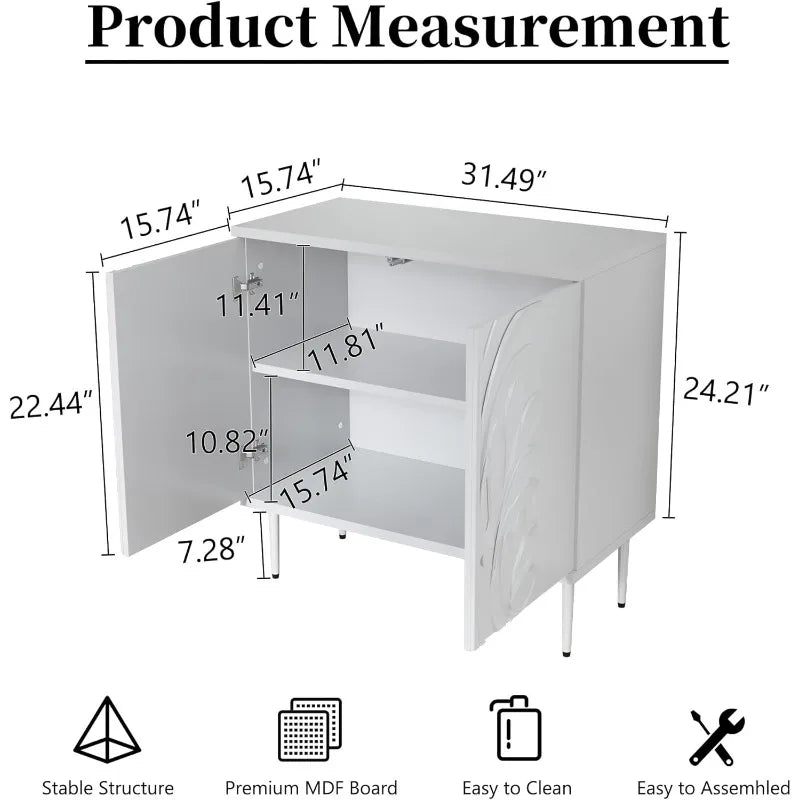 Accent Cabinet with 2 Doors, Buffet Cabinet with 3D Flower Pattern & Adjustable Shelves, Wood Credenza