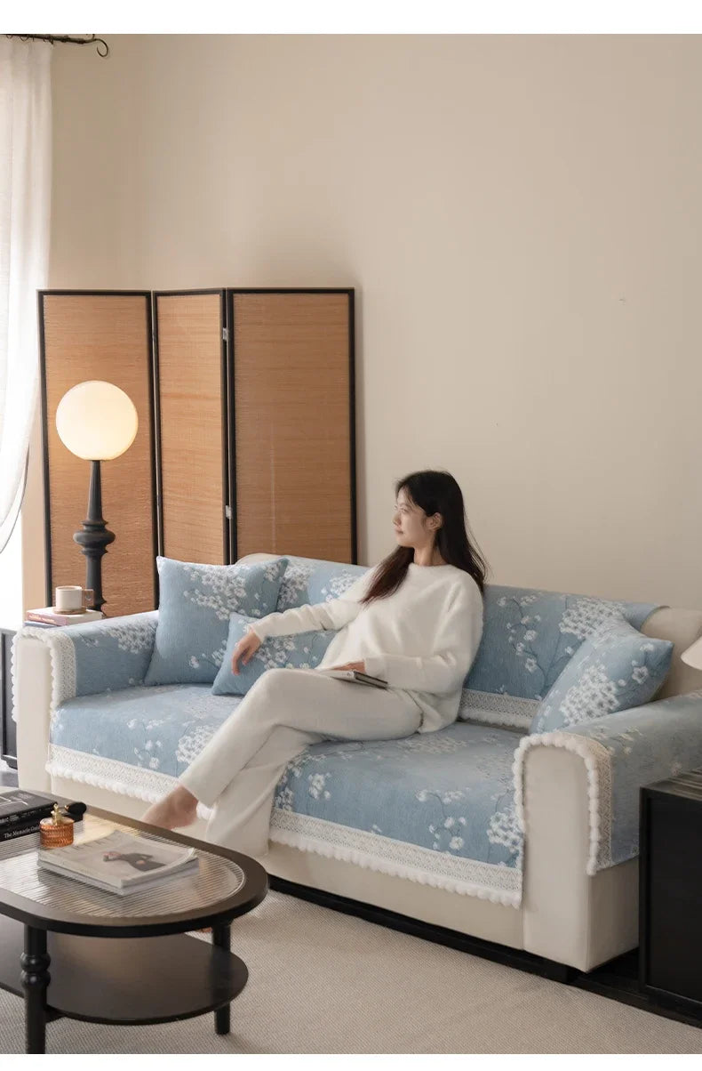 Chenille Flowers Sofa Cover All Season Non-slip Couch Protector