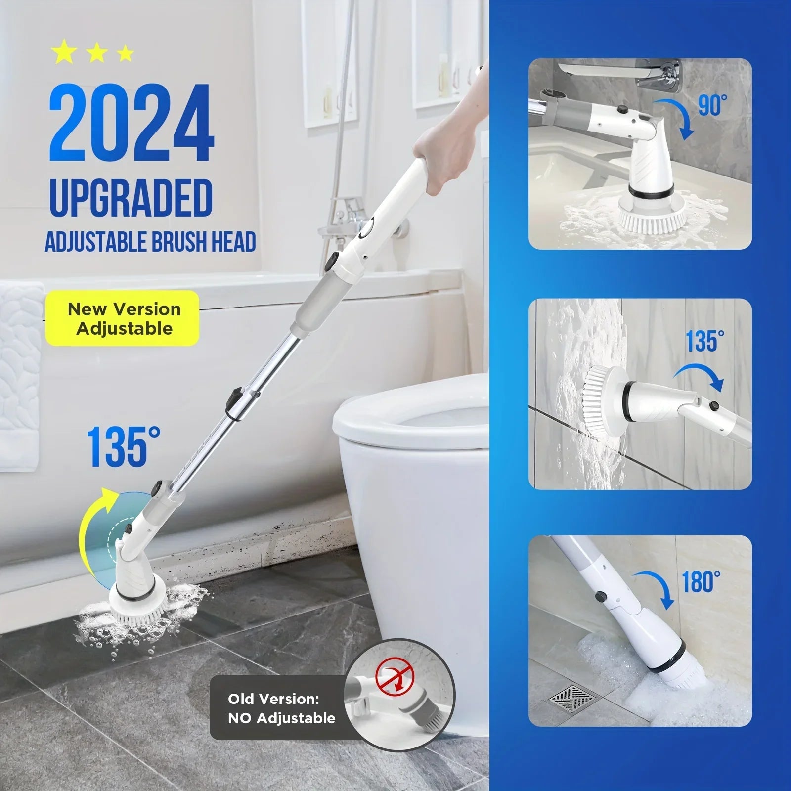 Electric Spin Scrubber - Cordless Cleaning Brush with 4 Heads and Extended Handle