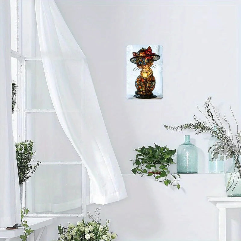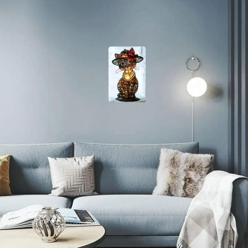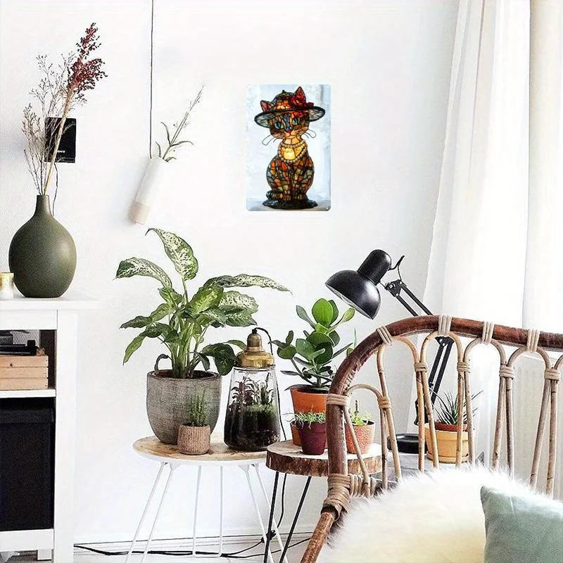 Retro Charm Cat Table Lamp & 2D Decorative Plaque Set Iron Material