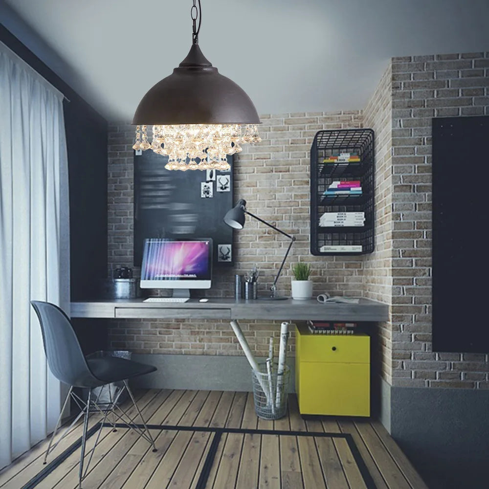 Rustic Industrial Crystal Pendant Light Vintage Chandelier Ceiling Lamp Fixture Fit 5-10m² Room