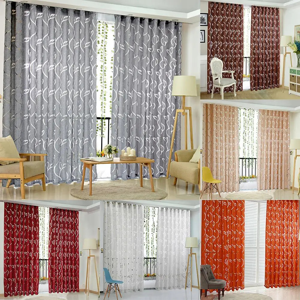 Vine Leaves Tulle Drape Panel Sheer Valances Semi Blackout Curtain Tulle Sheer Curtains